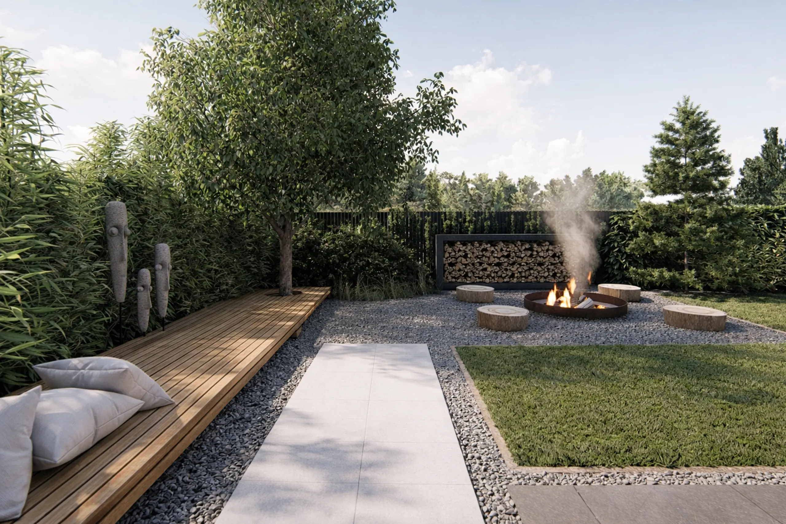Opracowałam koncepcję ogrodu inspirowanego stylem skandynawskim, przy nowoczesnej stodole. Z założenia jest to dom na długoterminowy wynajem, dlatego rozwiązania funkcjonalne przestrzeni musiały być uniwersalne, dopasowane do każdej grupy wiekowej.