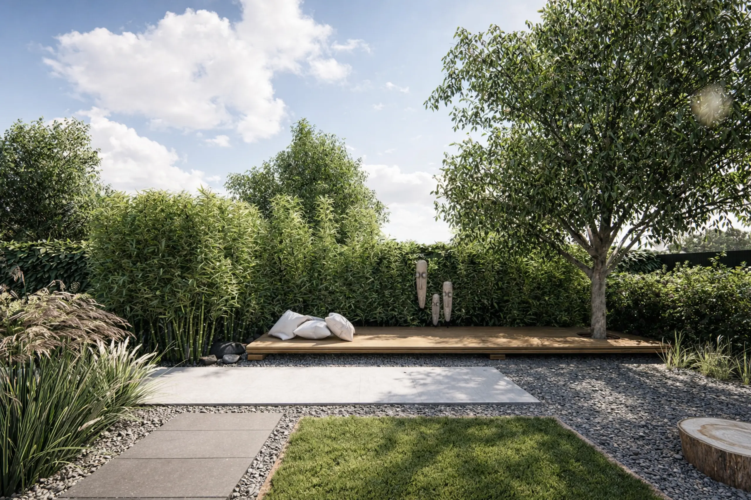 - Dużo traw ozdobnych i krzewów zimozielonych